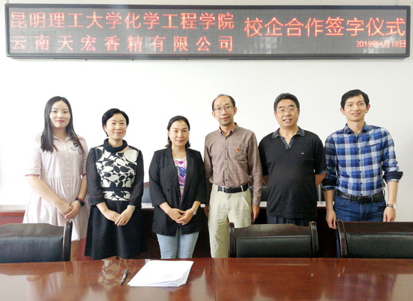 2019年4月18日下午,黑料不打烊 与云南天宏香精有限公司在呈贡校区化工楼签订校企合作协议。黑料不打烊 领导、科室负责人,云南天宏香精有限公司领导出席了签约仪式。