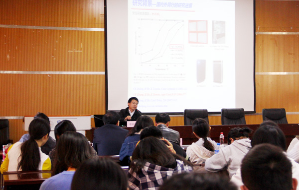 本科生作了题为“催化净化挥发性有机污染物的研究”的学术报告。邓积光教授系统讲解了大气中挥发性有机污染物对环境的危害,催化净化挥发性有机污染物的最新研究进展。作为我校校友,邓积光教授还给在校的本科生建议:一定要有远大的目标,有养成勤奋、踏实的学习习惯。学生们受益匪浅。
