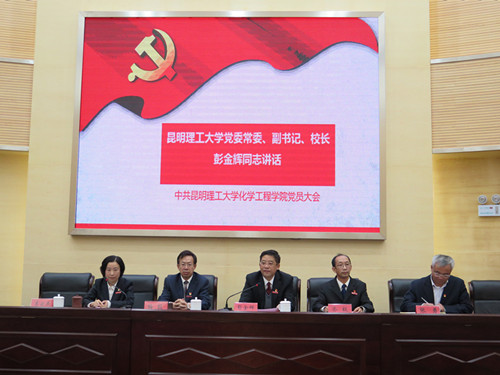 党员大会在化工楼100报告厅召开。校党委副书记、校长彭金辉同志受邀出席大会。