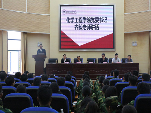 党委书记齐毅老师代表学院对2017级新生表示欢迎,向新生们介绍了学院的师资力量、现有研究项目和各专业实验室等基本情况。表达了对新生们的期望,希望同学们在学业上能够勤奋、努力、认真,在生活上自尊、自强、自立。