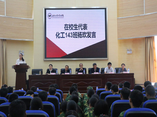 接下来,在校生代表化工143班杨欢同学和新生代表油运171班苗钰函同学发言。杨欢同学代表化工学院全体在校学生对2017级新同学们的到来表示欢迎,并向新同学分享了自己的学习生活经历,同时祝福新同学能拥有精彩而有意义的大学时光。苗钰函同学代表化工学院全体新生,感谢这几天学院为让新生们更快融入校园生活所做的工作,感谢各位老师的耐心指导,感谢各位学长学姐们的热情帮助。
