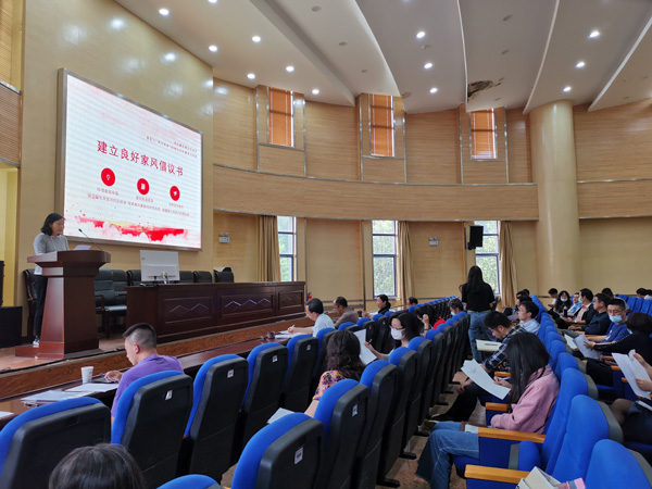 “两专两树”教职工纪律作风专项教育实施方案要求,化工学院于2020年6月18日,召开全院大会,组织全院教职工开展“两专两树”教职工纪律作风专项教育,向全院教职工家庭发出建良好家风倡议书。