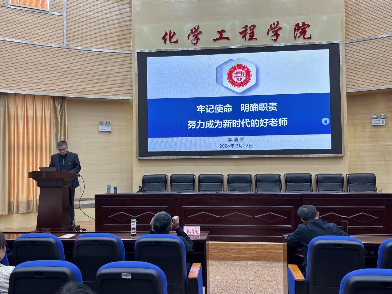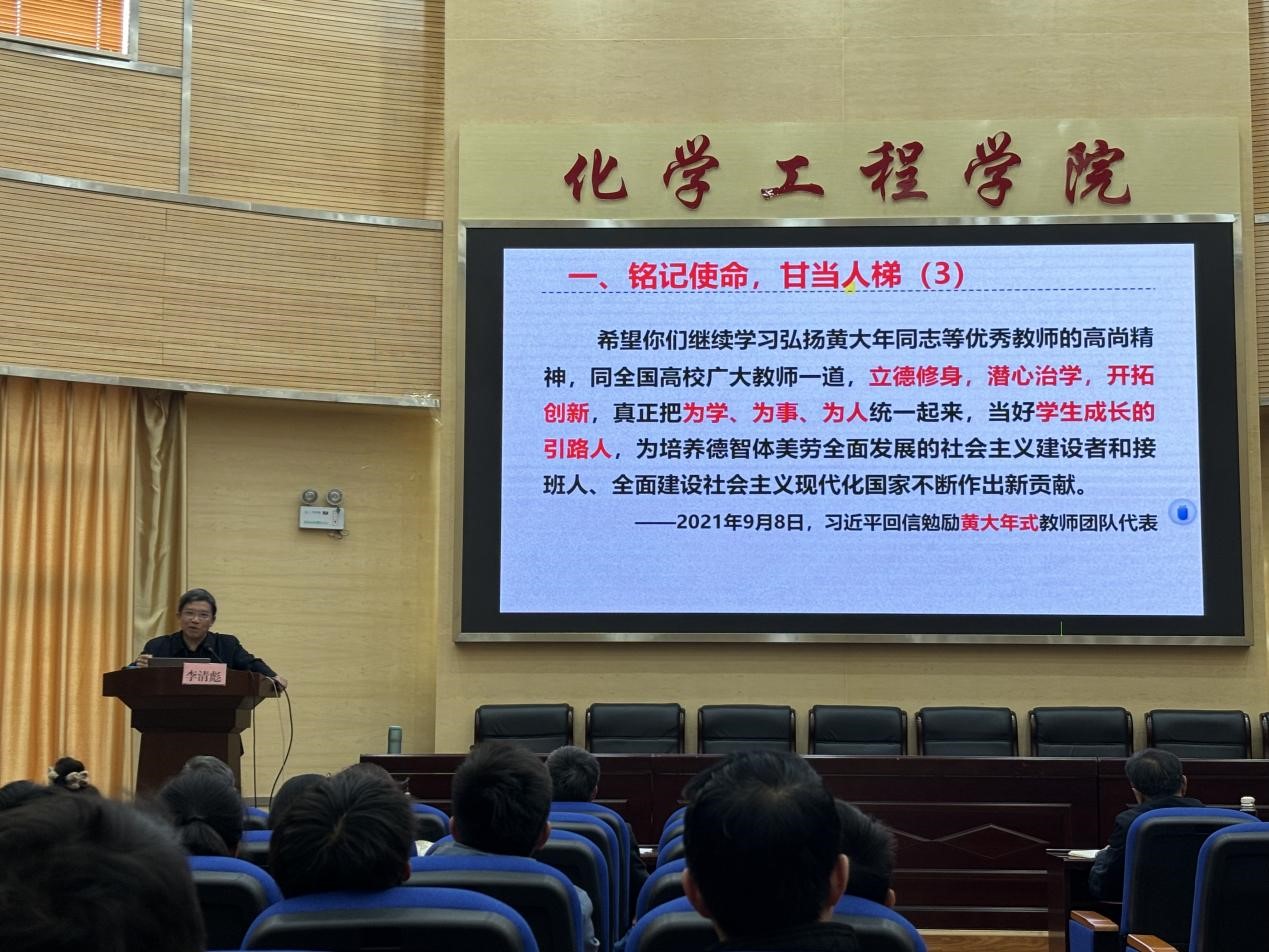 李清彪教授提出教师要时刻谨记习近平总书记的嘱托与期望,要铭记使命、甘当人梯,拓展视野、更新知识,淡泊名利、以德立身,做党和人民满意的“有理想信念,有道德情操,有扎实学识,有仁爱之心”的“四有”好老师。