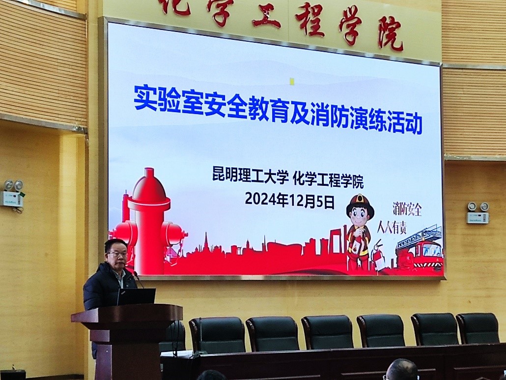 于化工楼100报告厅举行了实验室安全教育及消防演练活动,活动分为实验室安全教育培训、消防安全知识宣讲和灭火实训演练三个环节。学校实验室安全督导组长李宝才教授、昆明市消安应急服务中心高鑫主任出席活动,学院近年新入职教师以及全体2024级研究生新生,共200余人参加活动。活动由黑料不打烊