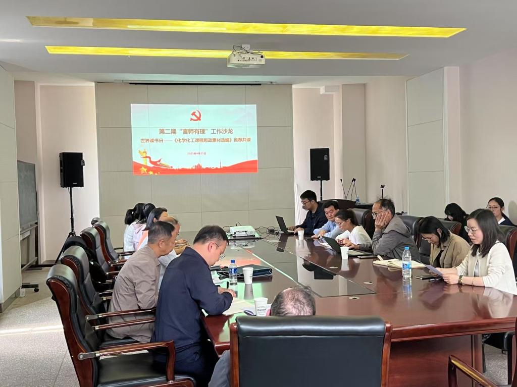 围绕《化学化工课程思政素材选编》推荐共读,在“世界读书日”期间举办了第二期“言师有理”工作沙龙。活动以“共读融思政于课,共话探教育良方”为主题,旨在提升教师课程思政教学能力,推动课程思政建设。本次活动由学院教工第二党支部承办,学院三个系的40余名教师共同参与,学校本科教学督导主任何屏教授、督导委员赵天瑞教授现场指导。