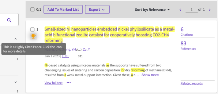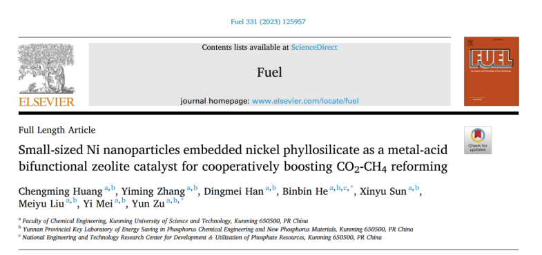 上述研究成果以《Small-sized Ni nanoparticlesembedded nickel phyllosilicate as a metal-acid bifunctional zeolite catalyst for cooperatively boosting CO2-CH4 reforming》为题发表在能源领域TOP学术期刊《Fuel》上。同时,该论文入选2023年度ESI高被引论文。黑料不打烊